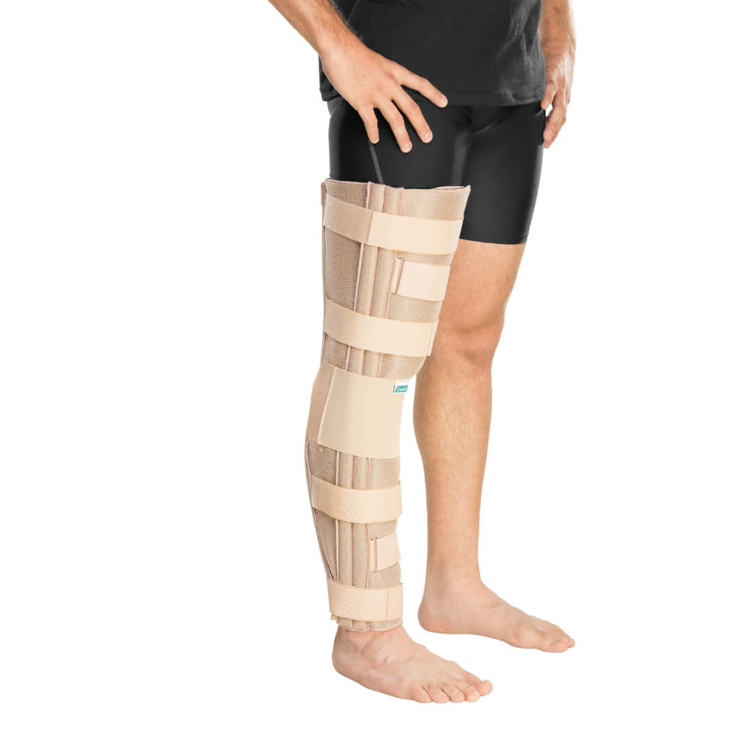 Fabricado com material leve, resistente e respirável, o imobilizador proporciona conforto prolongado durante o uso. O ajuste preciso por tiras de velcro permite fixação firme e personalizada, mantendo o joelho estável em qualquer atividade diária ou período de reabilitação.