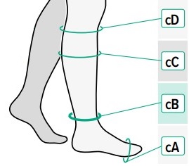 Para escolher o tamanho correto é necessário medir a circunferência da perna nos pontos indicados abaixo: