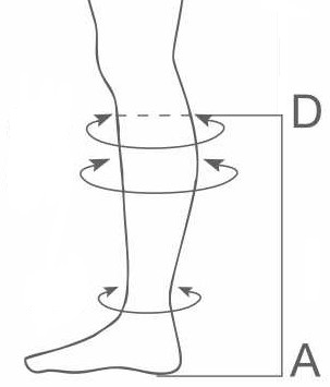 Para escolher o comprimento (altura) da meia é necessário medir a altura do chão até 2 dedos abaixo do joelho (aA-aD) como ilustrado na tabela abaixo: