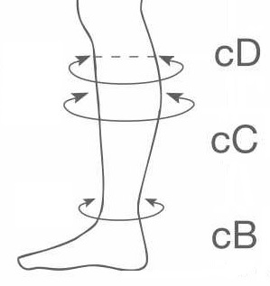 Para escolher o tamanho correto é necessário medir a circunferência da perna nos pontos indicados abaixo: